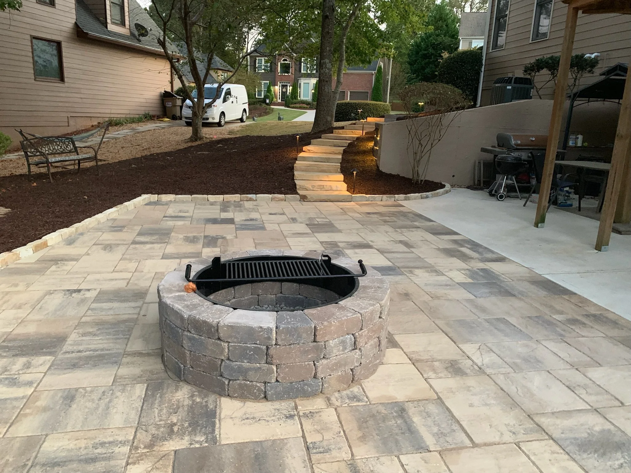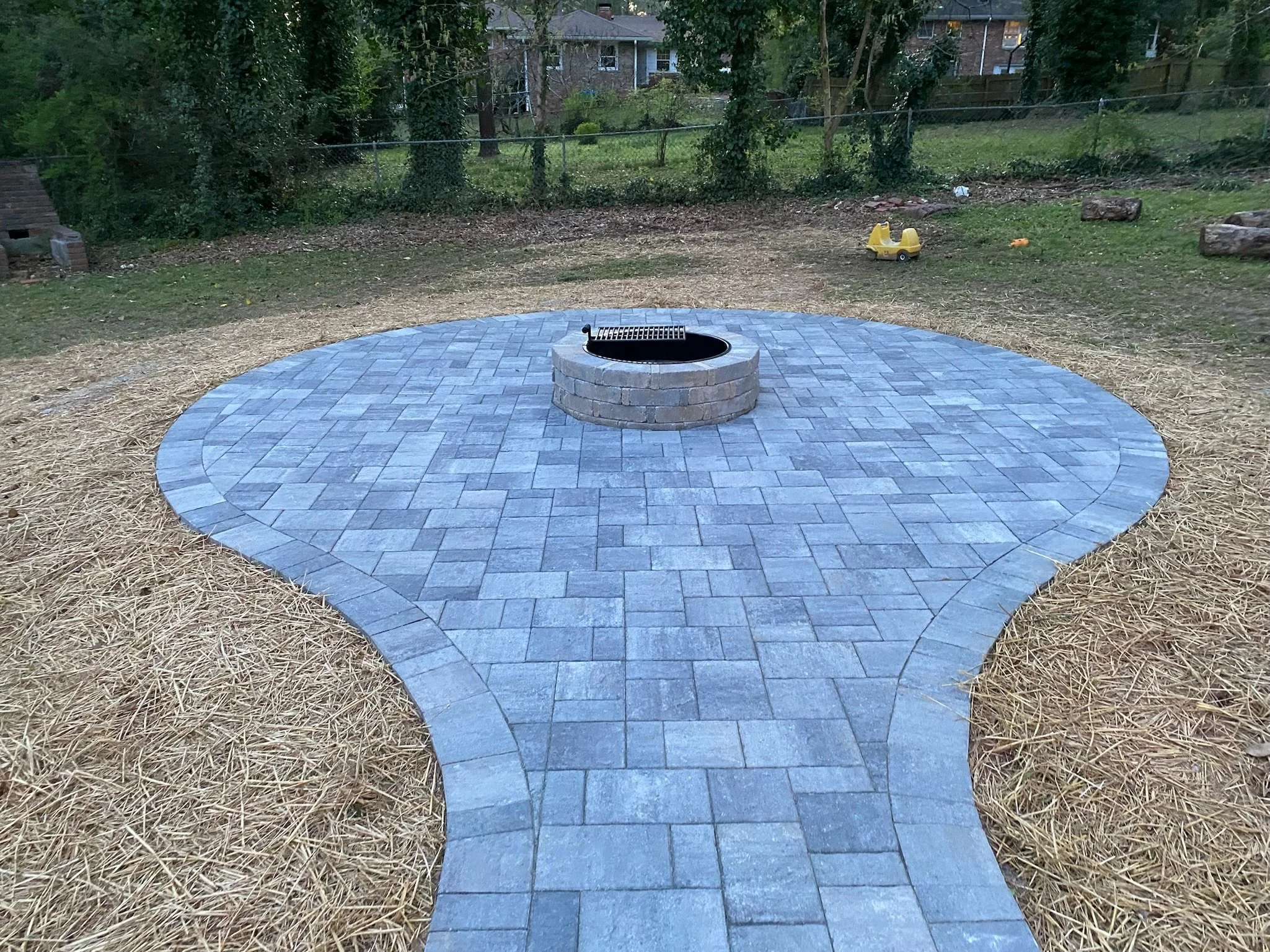 Project 2: Paver Patio with Fire Pit, Cobblestone edging, Mulch and Stepping Stones