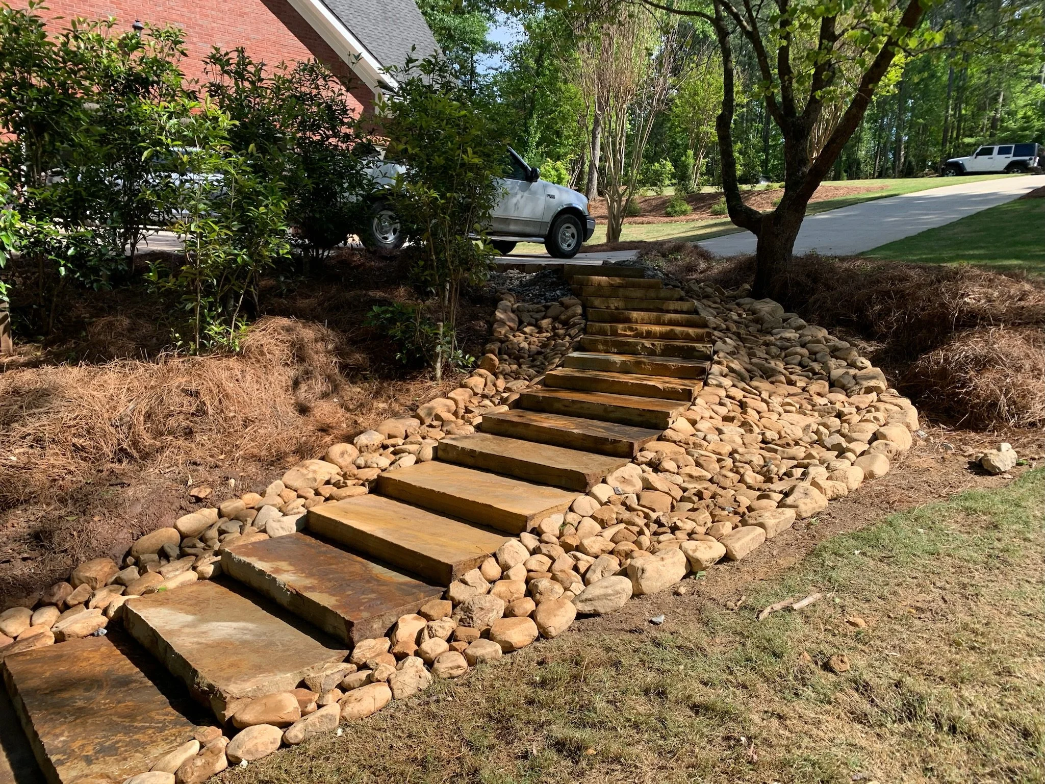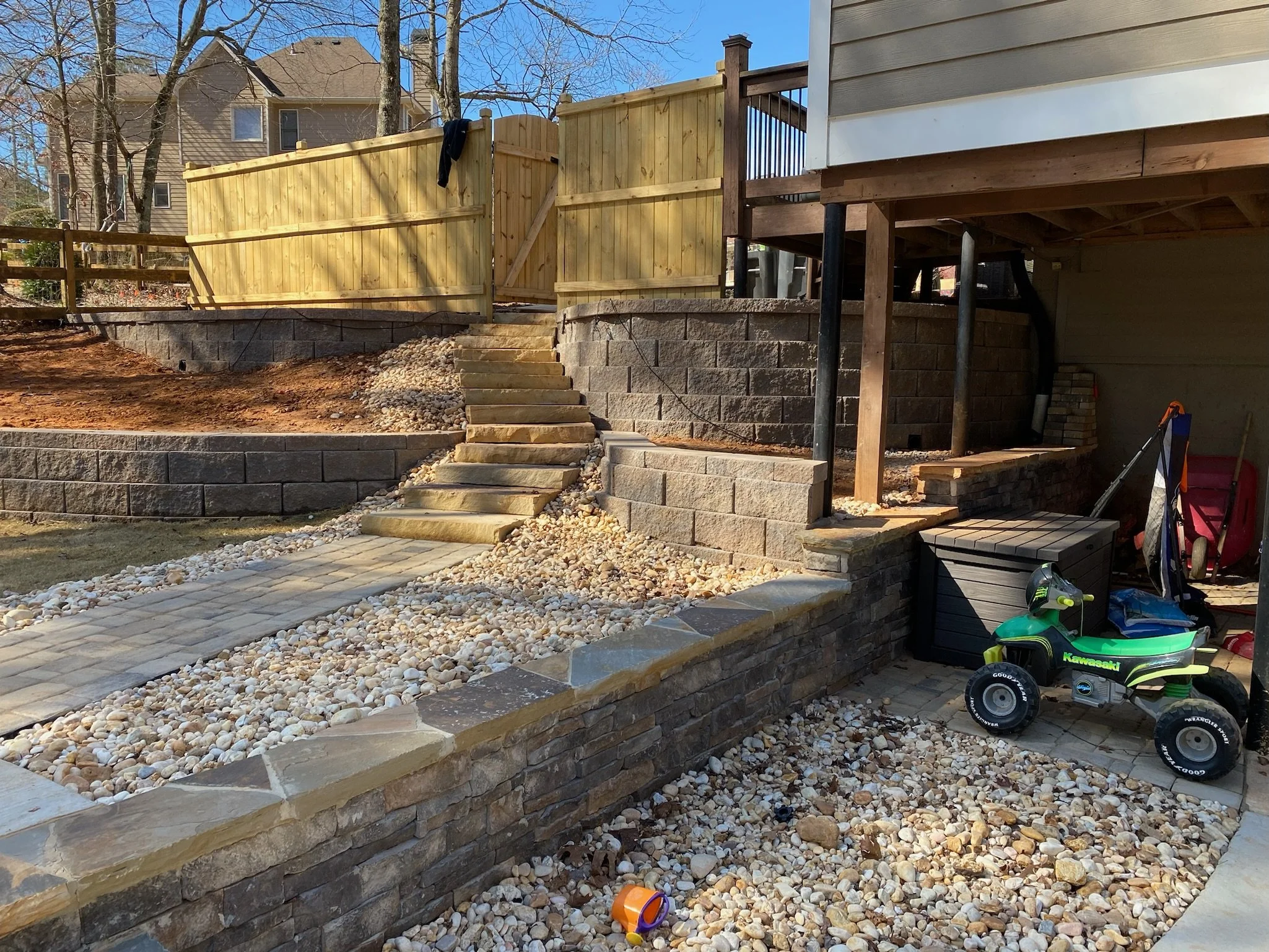 Project 1: Paver Steps connecting paver trail to paver patio near boat dock